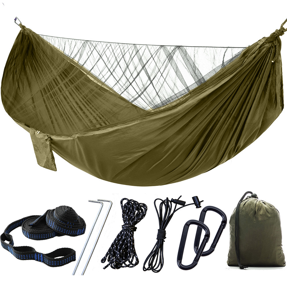 Hamak turystyczny z moskitierą 290x140 cm zielony