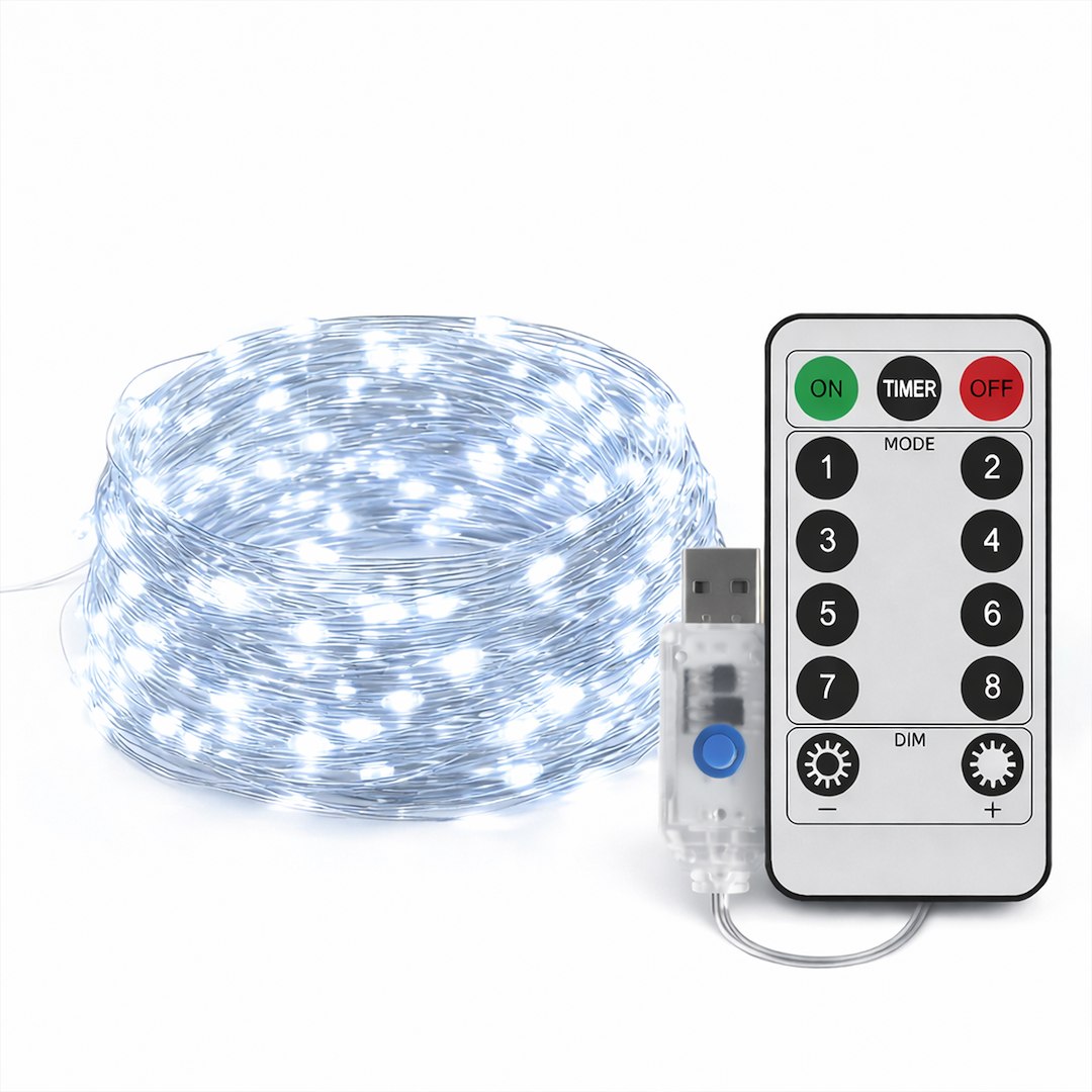 W zestawie znajdziesz pilot, którym zmienisz tryb świecenia oraz jasność, a także ustawisz czasowy wyłącznik bez podchodzenia za każdym razem do gniazdka.