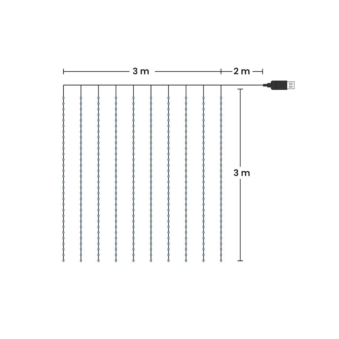 Kurtyna Okienna Girlanda Mery 300 LED USB Zimna 9000K
