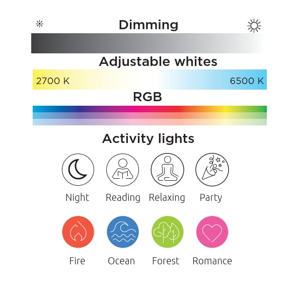 - źródło w zestawie: LED 7,5 W, 400 lm, 2700-6500 K&RGB