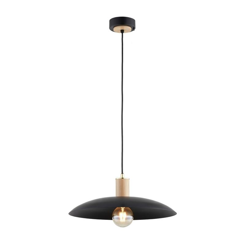 LAMPA WISZĄCA ALFA SPINER CZARNA & DREWNIANA 1xE27 / 61563