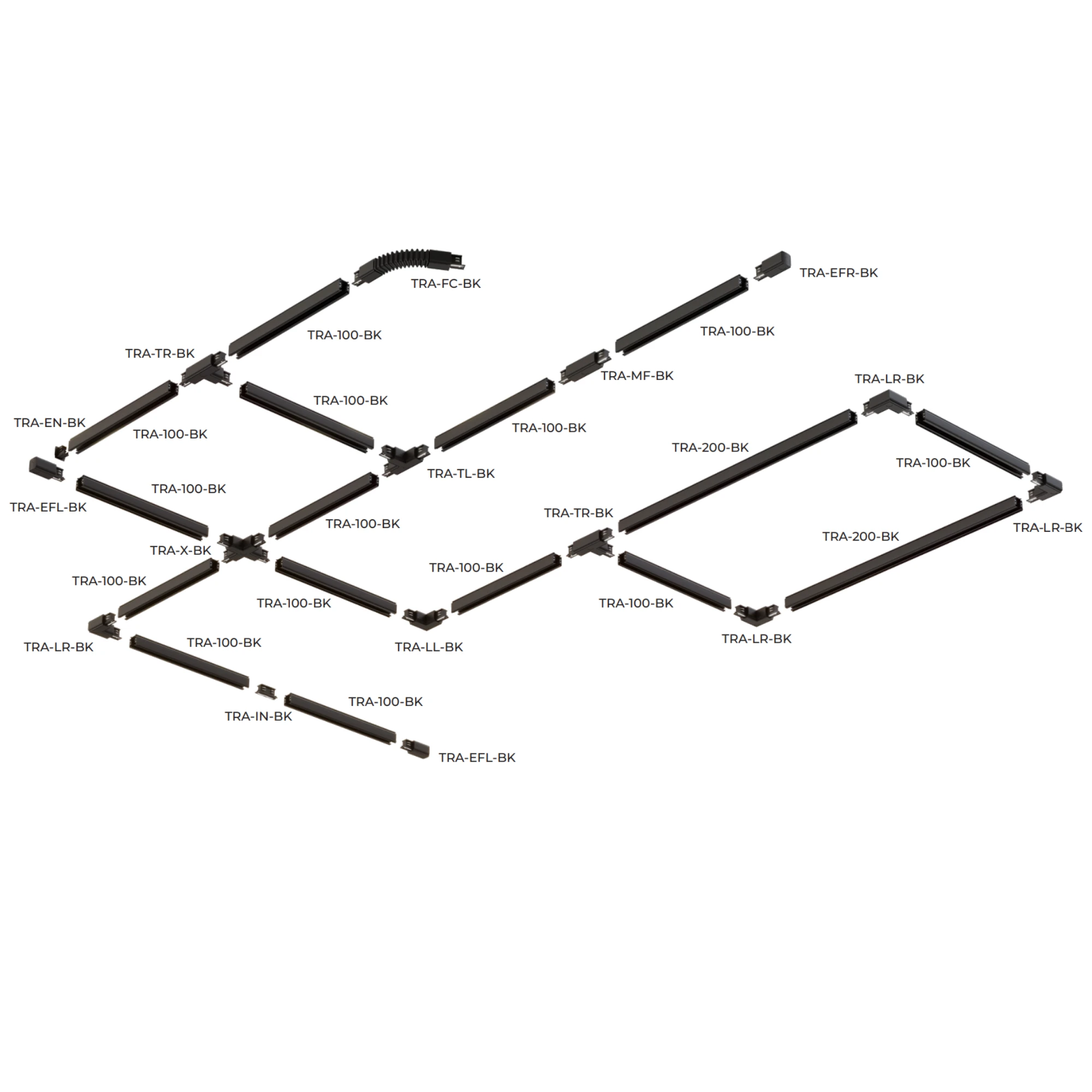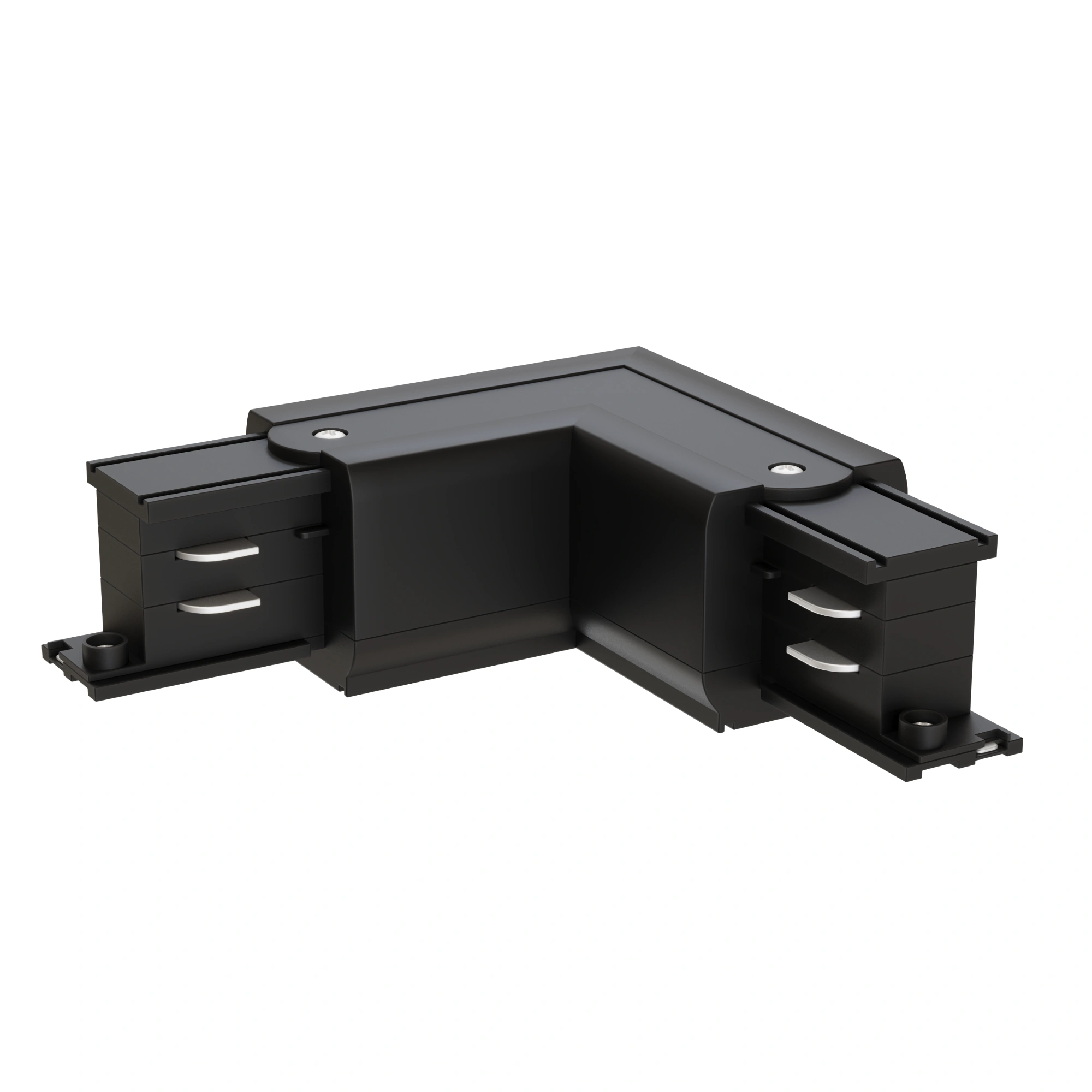 Łącznik TRA-LR-BK umożliwia profesjonalne łączenie szyn w narożnikach, zapewniając stabilność instalacji i elegancki wygląd wnętrza.
