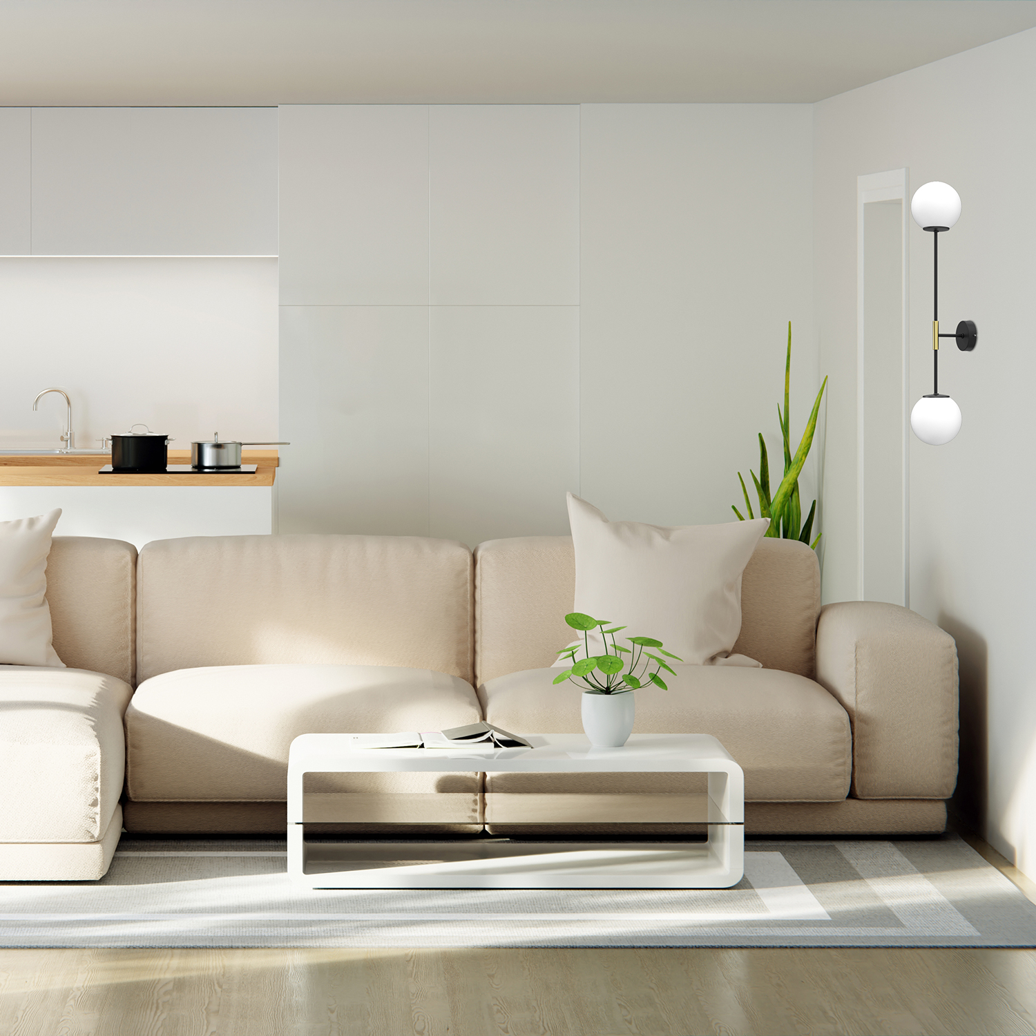 Geometryczna i smukła forma podkreśla nowoczesny charakter lampy, a beżowo-złota kolorystyka nadaje wnętrzu subtelnego luksusu.