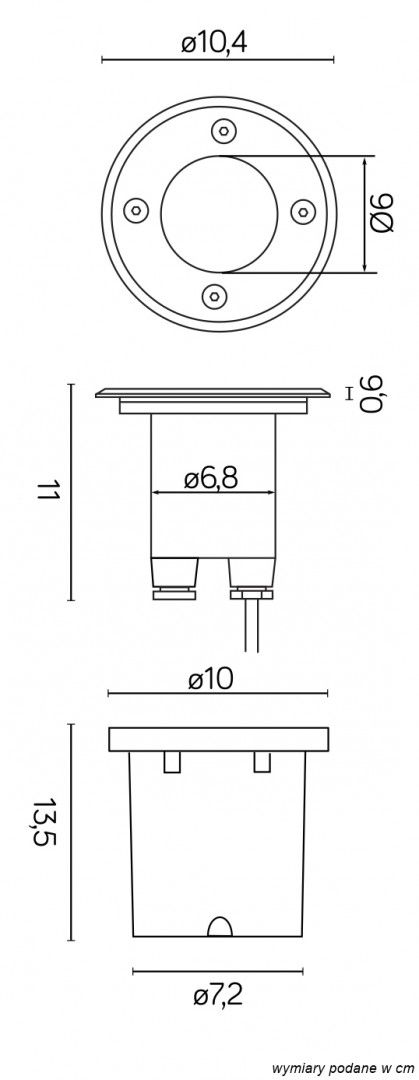 Do wbudowania w powierzchnie utwardzone (kostka brukowa, glazura, terakota, deski, beton) lub bezpośrednio w gruncie.