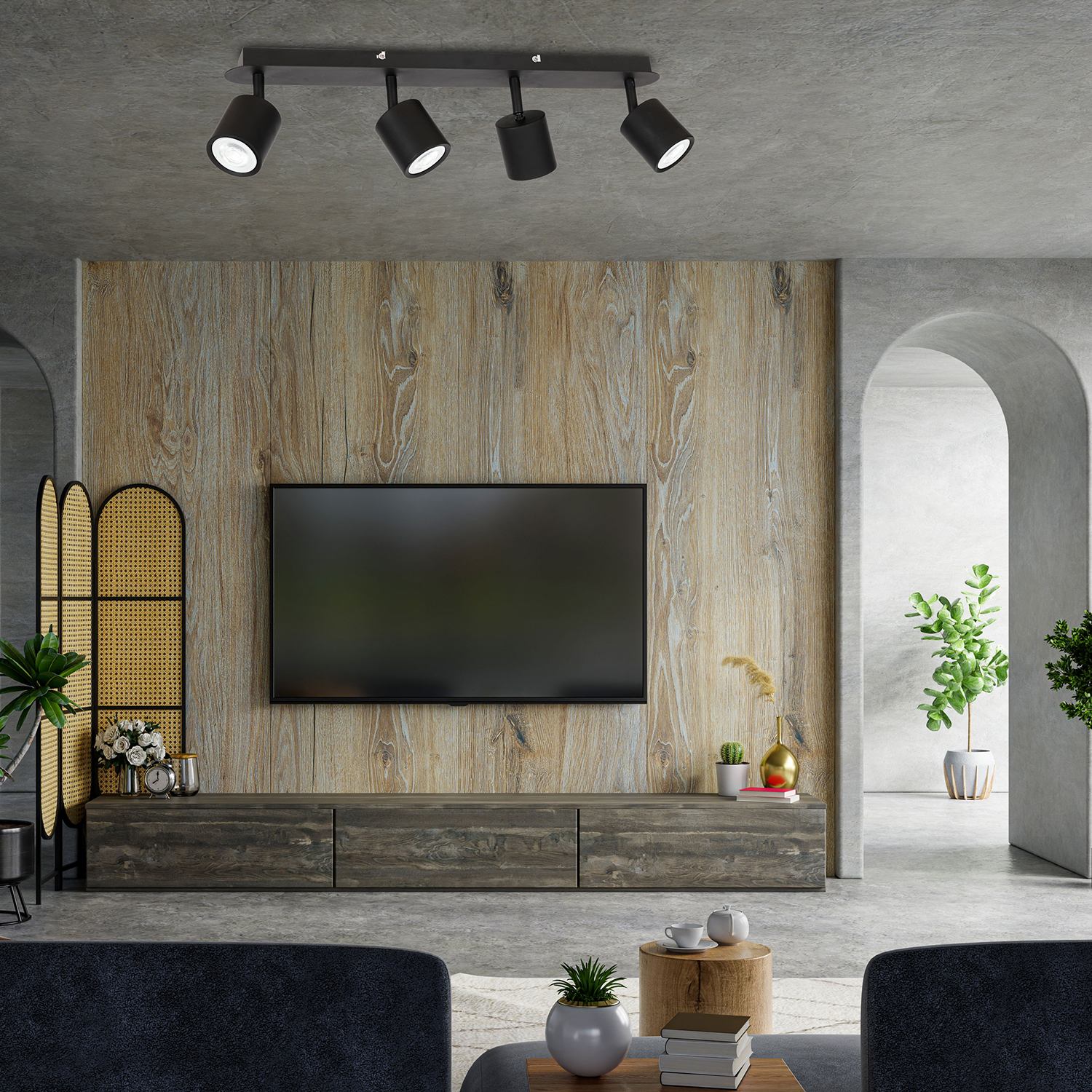Lampa sufitowa DEMIA czarna 1432 to nowoczesne i wydajne rozwiązanie oświetleniowe, idealne do większych przestrzeni. Cztery punkty świetlne GU10 zapewniają równomierne, mocne doświetlenie pomieszczenia, a elegancka, czarna forma podkreśla loftowy i minimalistyczny charakter wnętrza.