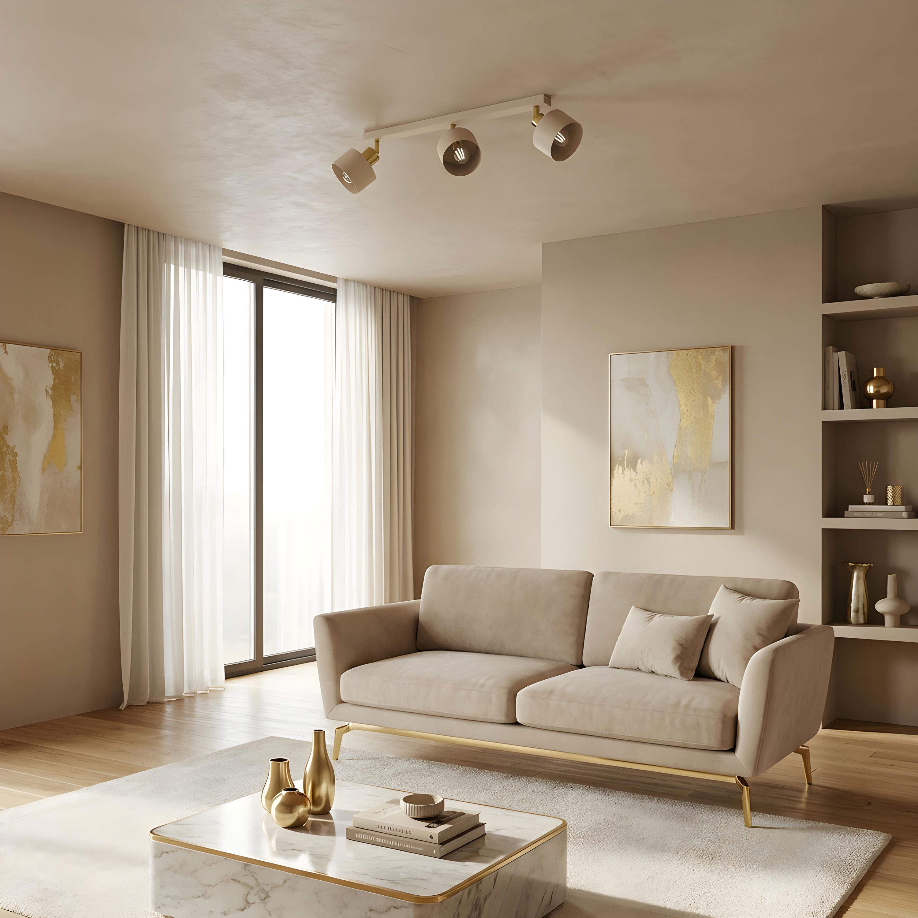 Elegancka i funkcjonalna lampa sufitowa PARKLA beige/gold 3xE27 to doskonały wybór do każdego wnętrza, w którym chcesz połączyć przytulną atmosferę ze stylowym designem. Neutralna, beżowa kolorystyka w połączeniu ze złotymi akcentami optycznie ociepla przestrzeń i nadaje jej wyrafinowanego charakteru, świetnie komponując się zarówno z nowoczesnymi, jak i klasycznymi aranżacjami.