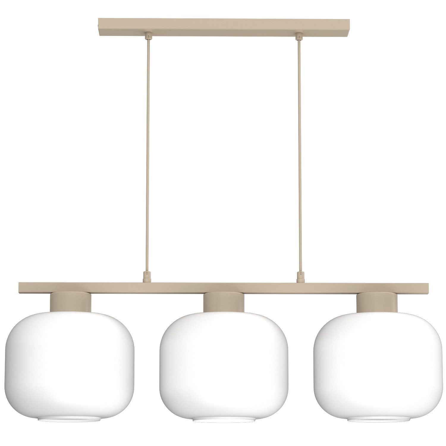 Jasna kolorystyka wprowadza do przestrzeni lekkość i harmonię, a szklane klosze delikatnie rozpraszają światło, tworząc przyjemną, ciepłą atmosferę. Dzięki trzem źródłom światła lampa zapewnia równomierne i skuteczne oświetlenie, idealne do większych pomieszczeń.