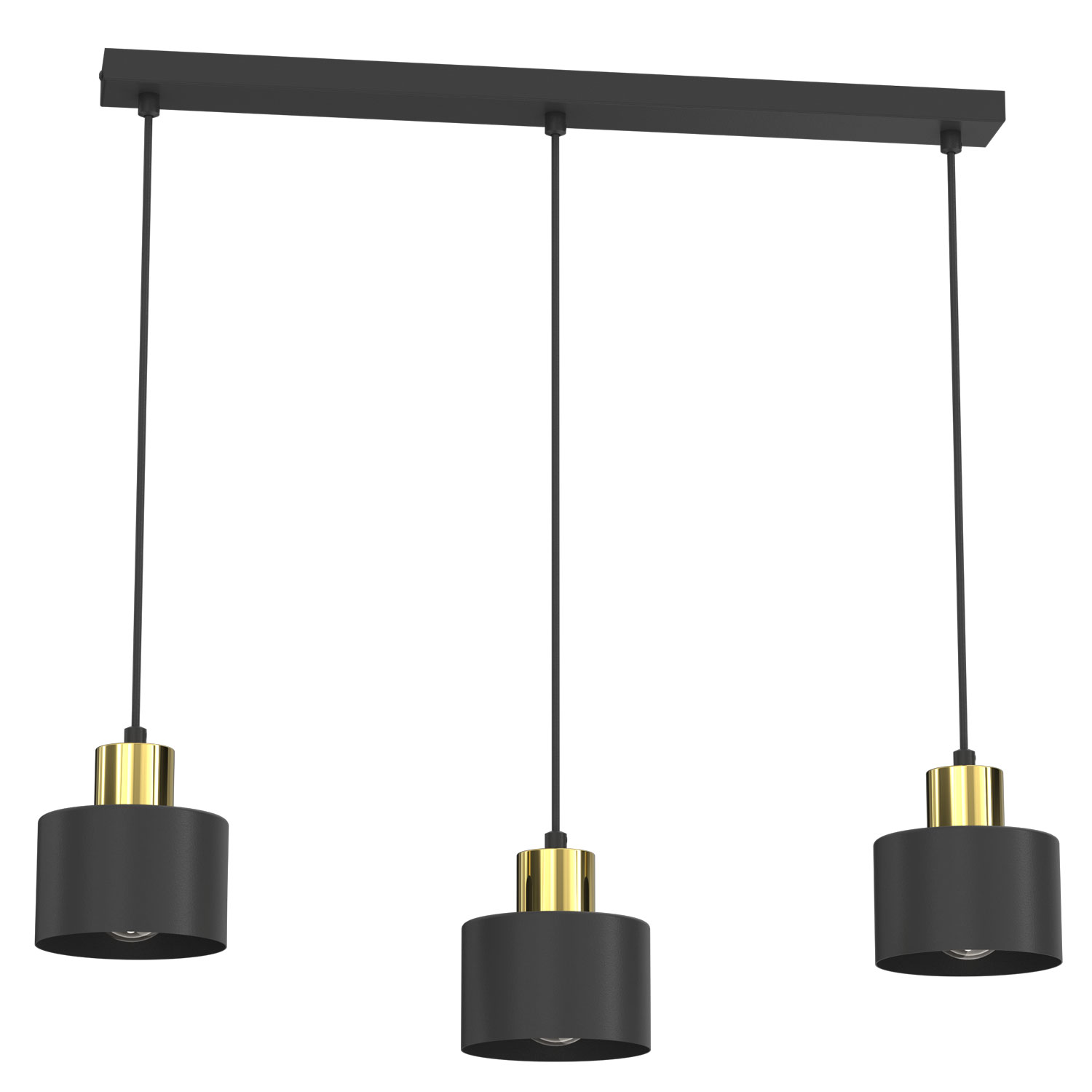 Połączenie matowej czerni z subtelnymi złotymi akcentami nadaje lampie wyjątkowej elegancji i stylu, tworząc przyjemną, dekoracyjną atmosferę. Trzy źródła światła z gwintem E27 zapewniają odpowiednią ilość światła oraz możliwość dopasowania jego barwy i intensywności do indywidualnych potrzeb – zarówno przy użyciu klasycznych, jak i energooszczędnych żarówek LED.