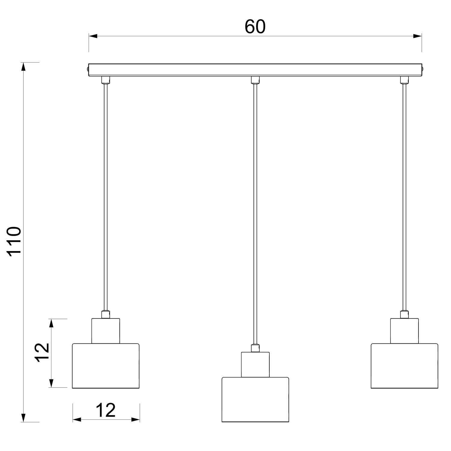 | Ilość źródeł światła | 3 x E27 max 15W LED |