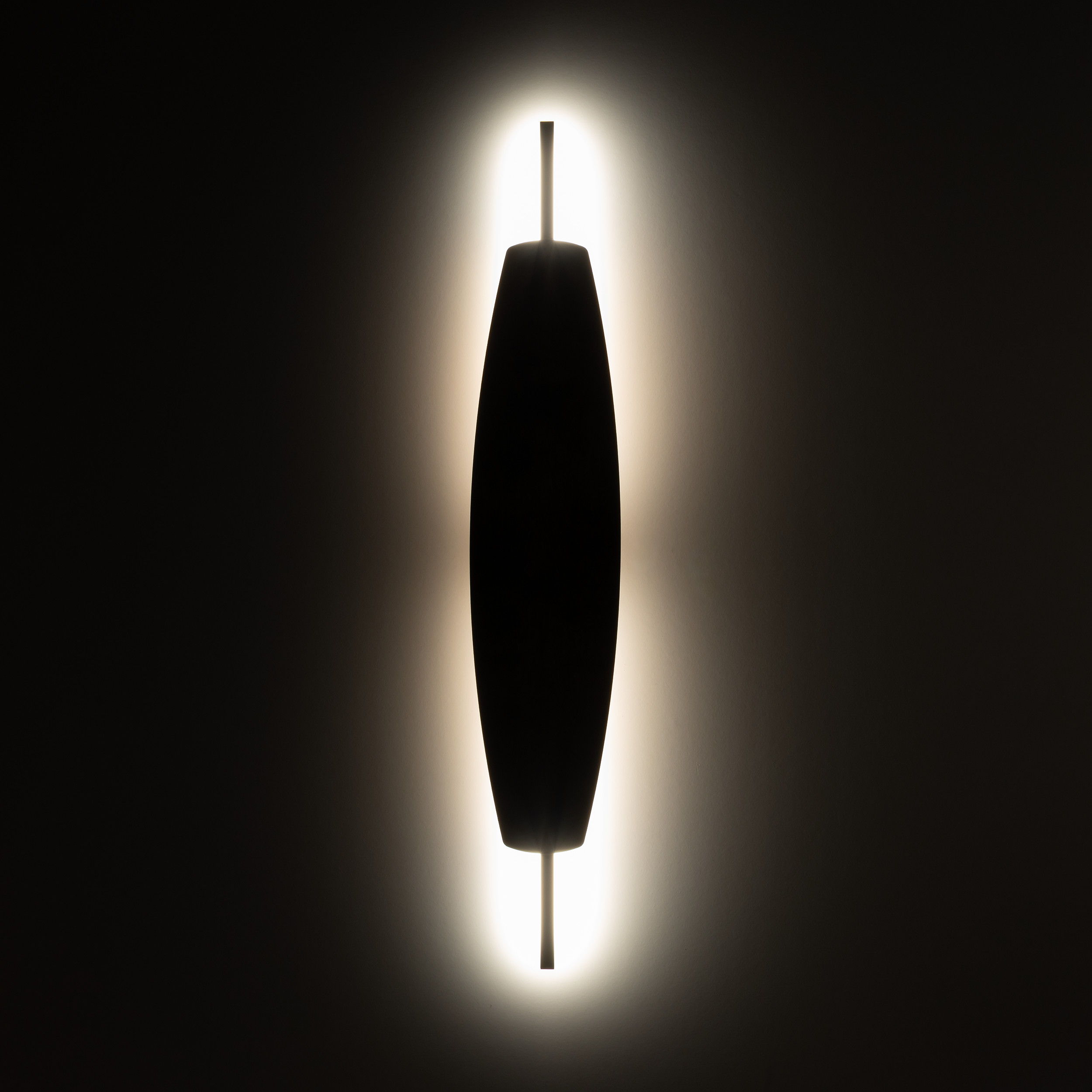 MAREWA to elegancka rodzina dekoracyjnych kinkietów, które łączą prostotę formy z ciepłem naturalnego wykończenia. Smukły, pionowy profil w czerni został zestawiony z długim, delikatnie wyoblonym panelem ze sklejki w kolorze orzecha. Organiczny kształt przywodzi na myśl liść lub deskę wiosła, dzięki czemu lampa staje się subtelną, a jednocześnie wyrazistą ozdobą ściany. Światło ukryte za panelem miękko rozlewa się po tle, tworząc nastrojową poświatę idealną do strefy wypoczynku. Rodzina dostępna jest w dwóch rozmiarach: MAREVA M – jako smukły akcent świetlny oraz MAREVA L – bardziej wyrazista, wydłużona forma, która świetnie sprawdzi się pojedynczo lub w kompozycjach po kilka sztuk. Kinkiety MAREVA doskonale uzupełnią aranżacje nowoczesne, loftowe i inspirowane naturą, wprowadzając do wnętrza przytulny klimat oraz elegancki detal w odcieniu orzechowego drewna.