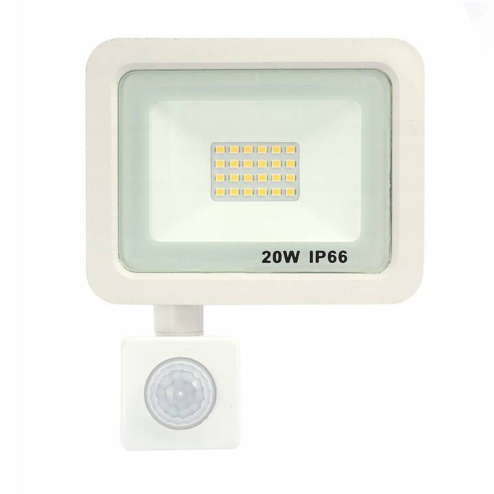 NAŚWIETLACZ Z CZUJNIKIEM RUCHU BIAŁY 20W B.ZIMNA 6000K
